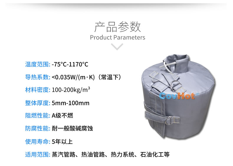 防腐蝕可拆卸法蘭閥門保溫套是目前的閥門管道、設(shè)備用來(lái)保溫隔熱的優(yōu)良產(chǎn)品。它可用在不同溫度,不同形狀的管道和冷熱設(shè)備上使用,而且可以異形定制,與設(shè)備完美貼合。對(duì)于要經(jīng)常拆卸、維修養(yǎng)護(hù)、清洗的管道設(shè)備尤為實(shí)用。其綜合經(jīng)濟(jì)效益好。是化工領(lǐng)域節(jié)能保溫理想選擇!